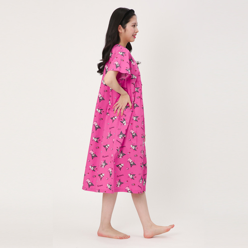 サンリオの人気キャラクター、クロミのワンピースは、ルームウェアとしてもおすすめです。クロミのかわいらしいデザインで、毎日のくつろぎタイムが癒しのひとときになります。さらに、着心地と寝心地も抜群で、リラックスした時間をより快適に過ごせます
