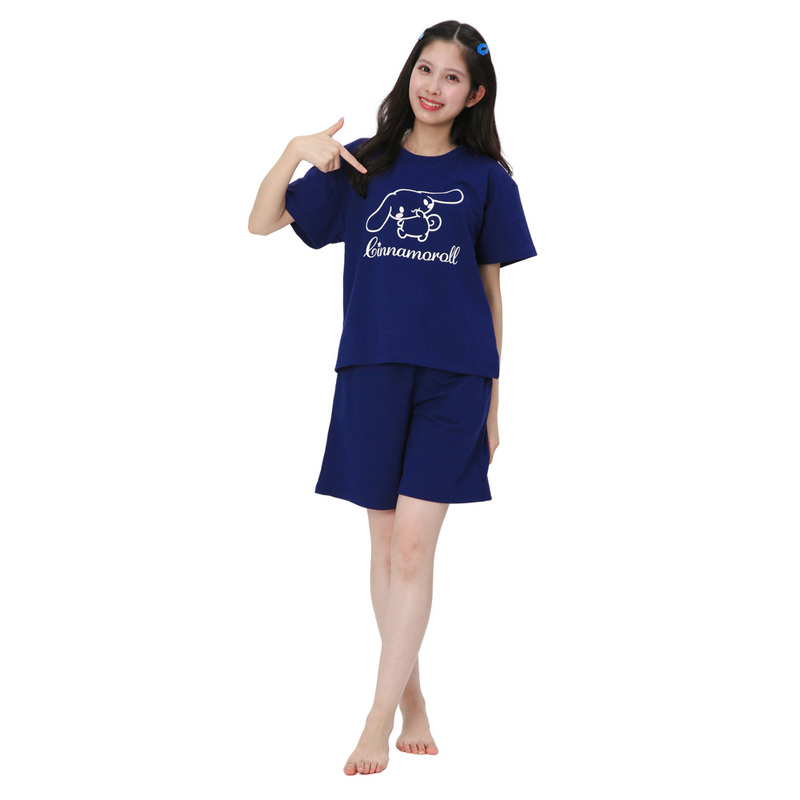 【取寄品】 SAZAC(サザック) てくてくシナモロールTスーツ ネイビー レディスL,レディース,ファッション,女性用,大人用,ルームウェア,部屋着,パジャマ,寝巻き,寝間着,サンリオ,SAZAC,サザック,キャラクター