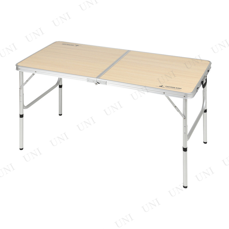 キャンプをもっと快適に! 食事がしやすい高さ設計のテーブルです。脚は着脱簡単なワンタッチジョイント式で2段階の高さに調節が可能。ジョイントパイプを外し、脚部を折りたたむだけのシンプルな構造なので組立、収納が簡単です。軽くて丈夫な合板とアルミを使用し、天板裏とアルミ脚は補強付き。取っ手付きで持ち運びに便利です。あたたかみのある木目調天板が安らぎのお食事タイムを演出します